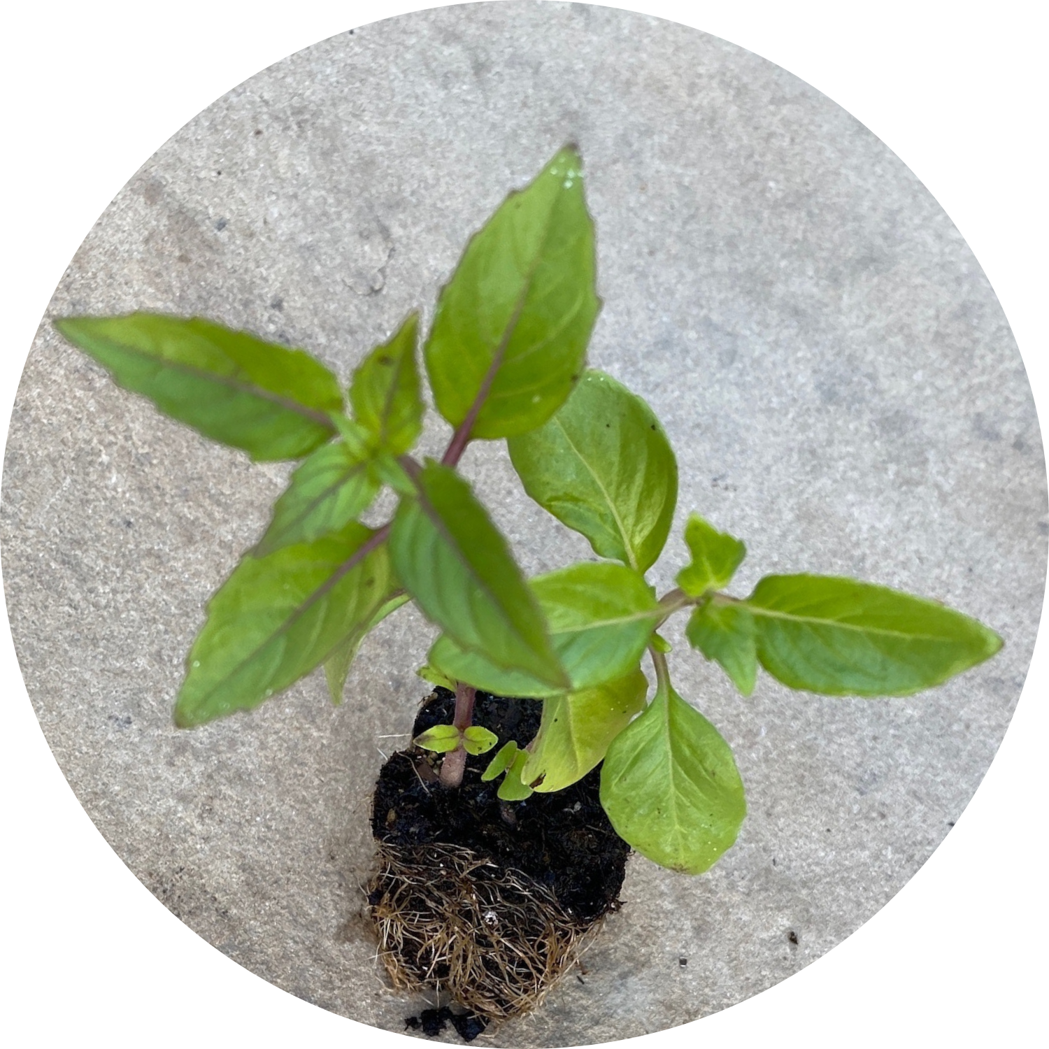Cinnamon Basil is a 2" organically grown herb with green leaves and a warm, spicy fragrance. Thrives in grow pots, containers, and planted walls—great for teas, desserts, and savory sauces.