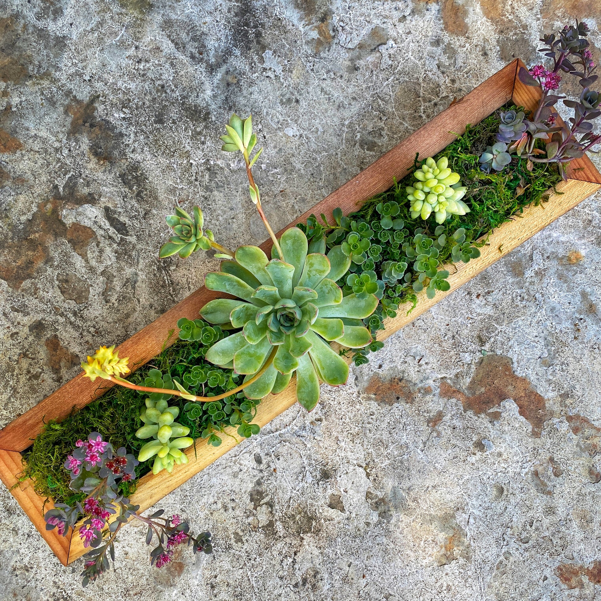 Planter boxes can be displayed inside (next to a window so the succulents get at least 4-6 hours of sunlight), or outside.  They can also be mounted on a wall or showcased as the centerpiece for your dining table, in your entryway, or anywhere you want to bring the beauty of the outdoors in.