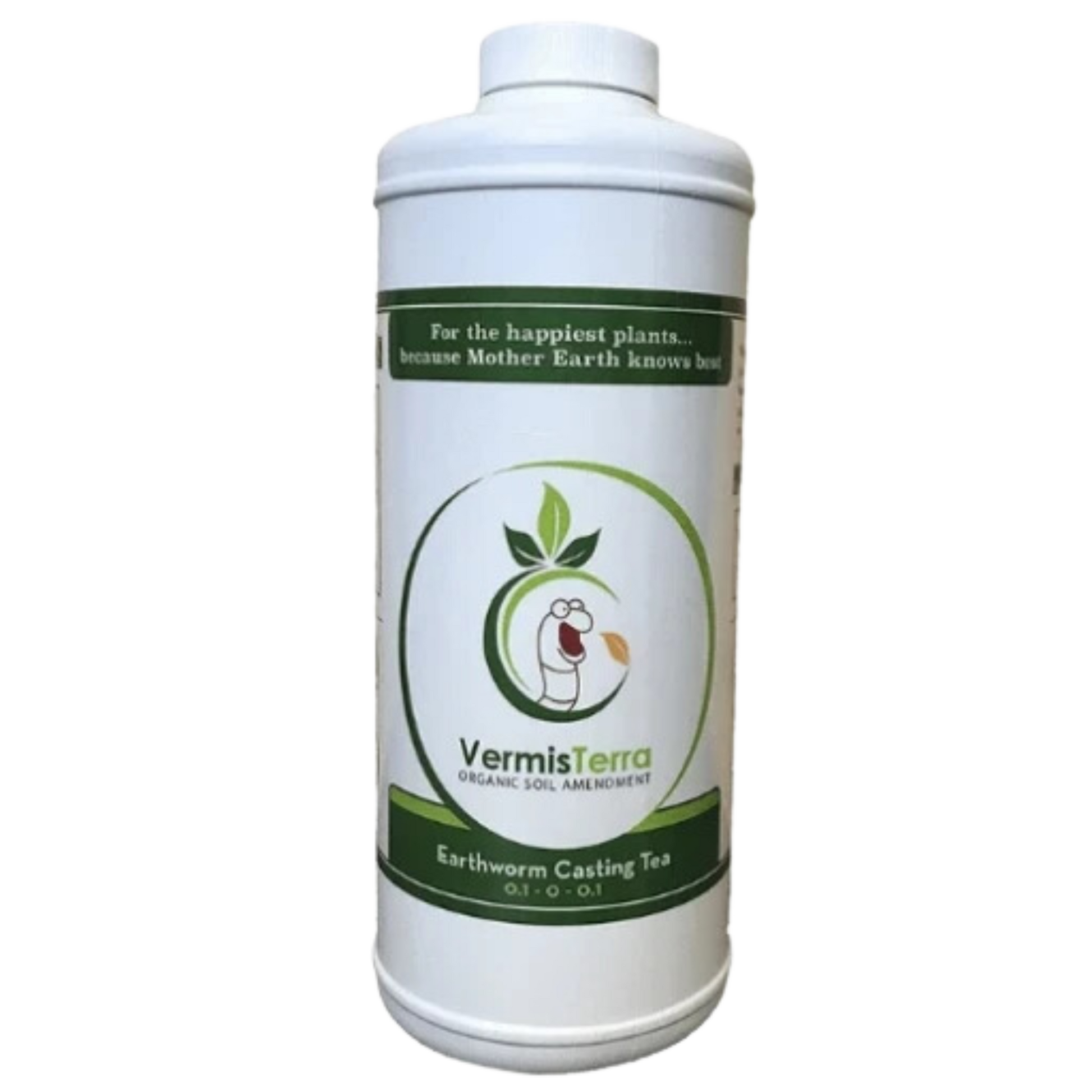 VermisTerra Earthworm Casting Tea is a liquid plant nutrient derived from earthworm castings. It is a great source of helpful microbes to enhance the health of the soil and the plants.