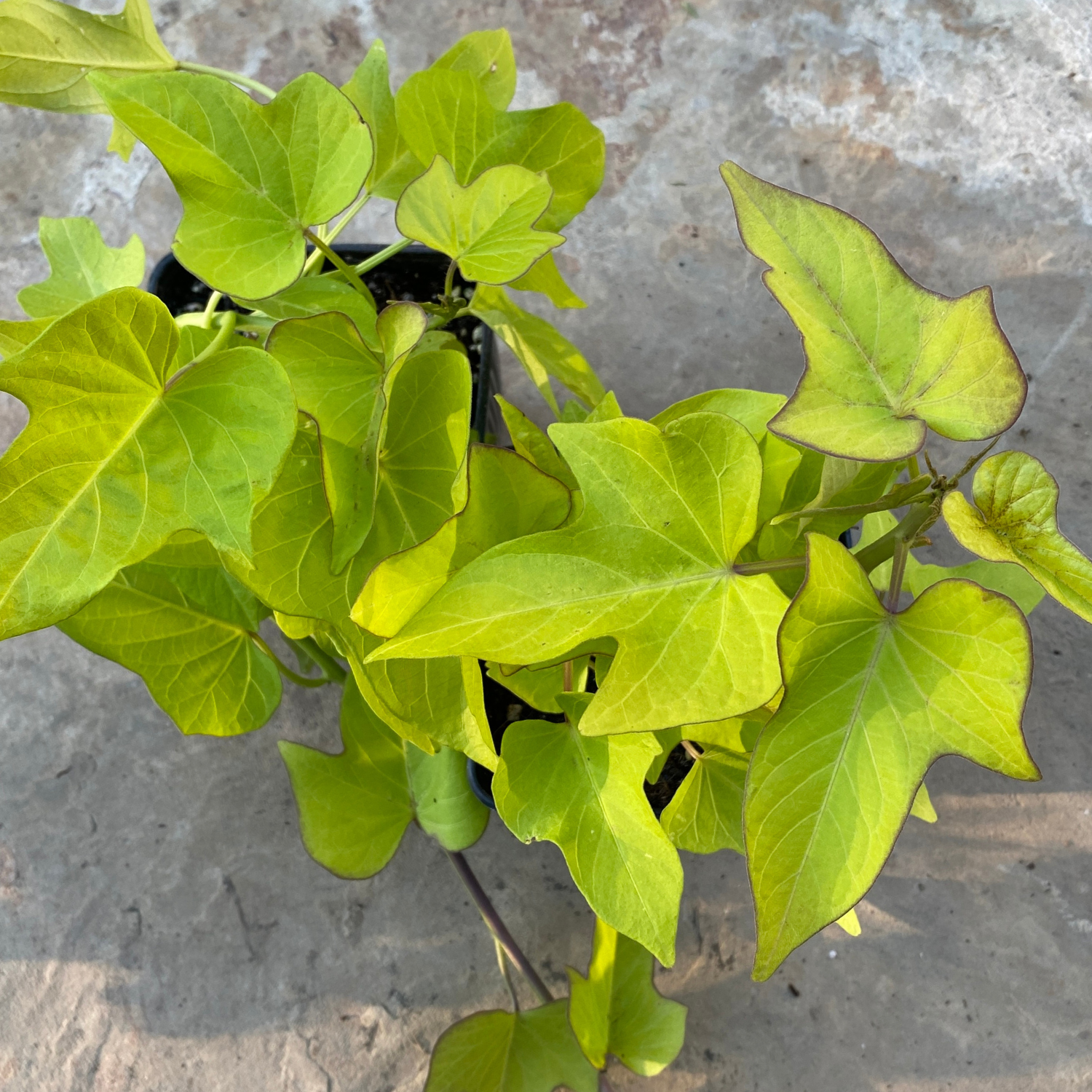Lime Green Sweet Potato Vine is a vibrant ornamental annual loved for its bold chartreuse foliage and vigorous trailing growth. It’s the perfect choice for brightening up garden beds, patio containers, or hanging baskets with a splash of neon-green energy.