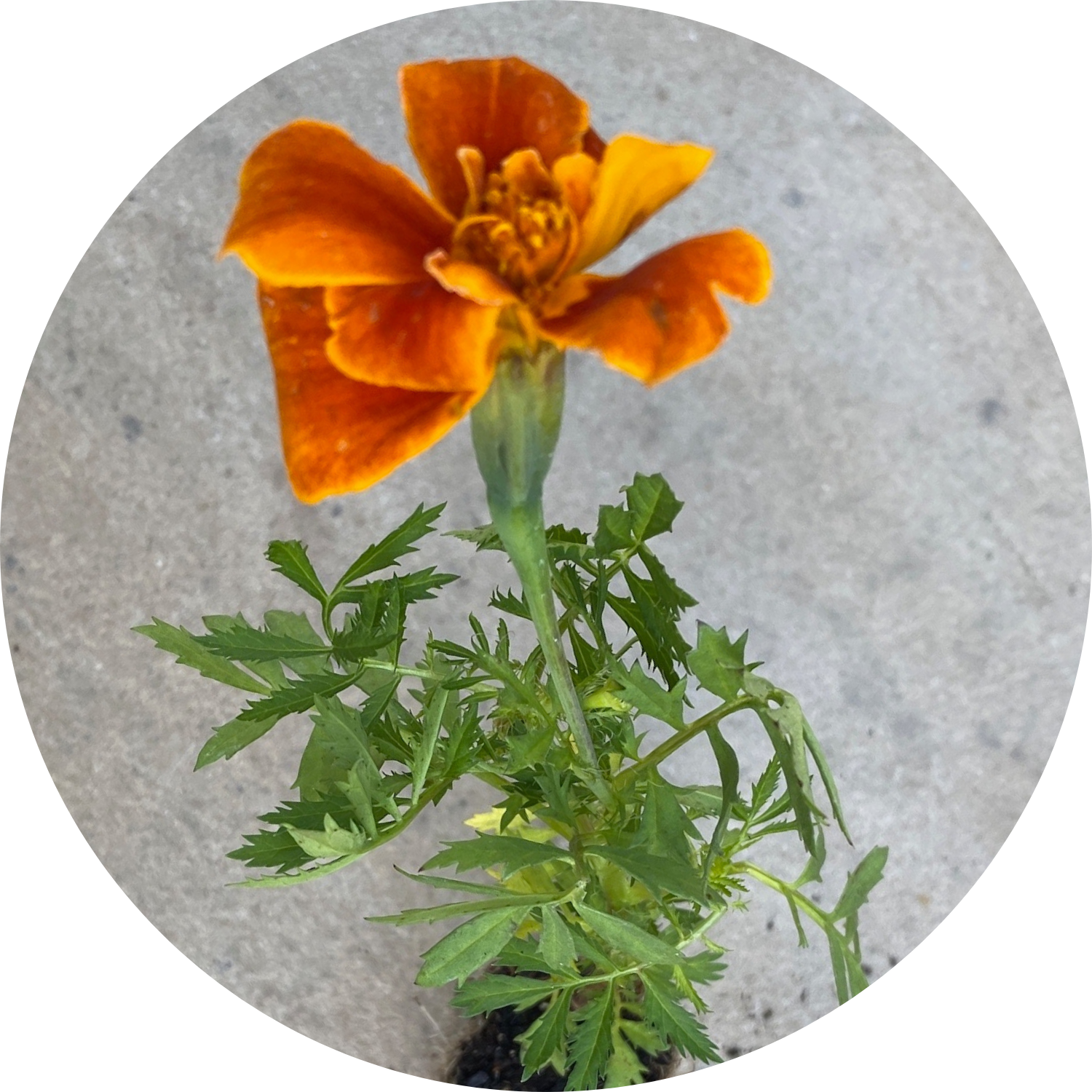 Marigold is a 2" organically grown edible flower with bright golden blooms and a bold aroma. Thrives in grow pots, containers, and planted walls—great for garden decor, teas, and edible garnishes.