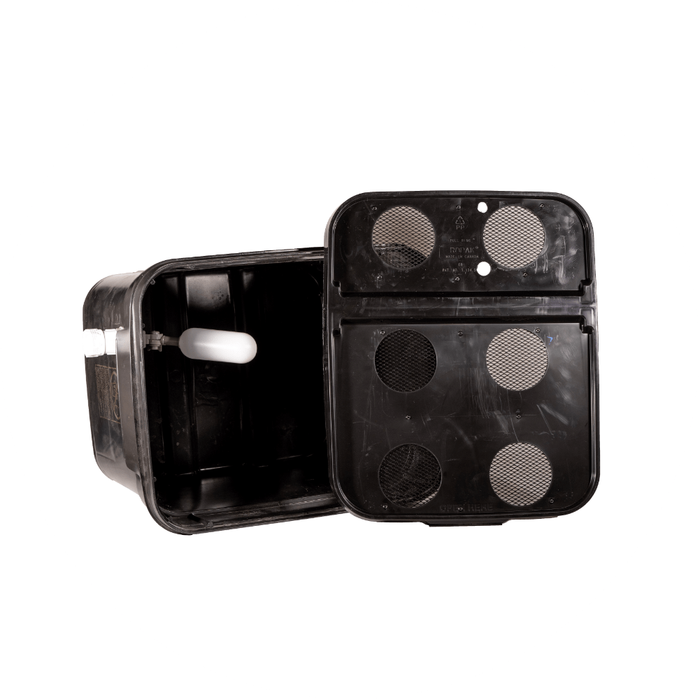 Heavy duty water basin made with high-density polyethylene material that can hold up to 8 gallons of water. The basin has been custom engineered to catch water drip from irrigation without losing water runoff. Each basin comes with a water float valve for an automatic water refill. Option to connect the valve with an existing water spigot for an automatic refill or fill the water basin as needed manually.