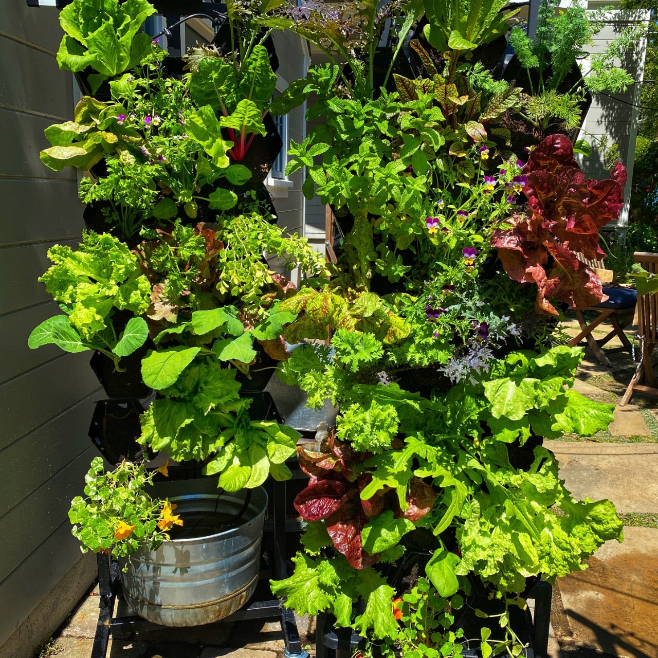 You can grow ~14-25 pounds of fresh product every month during peak growing season. That's 4 salads a week for a family of 4!