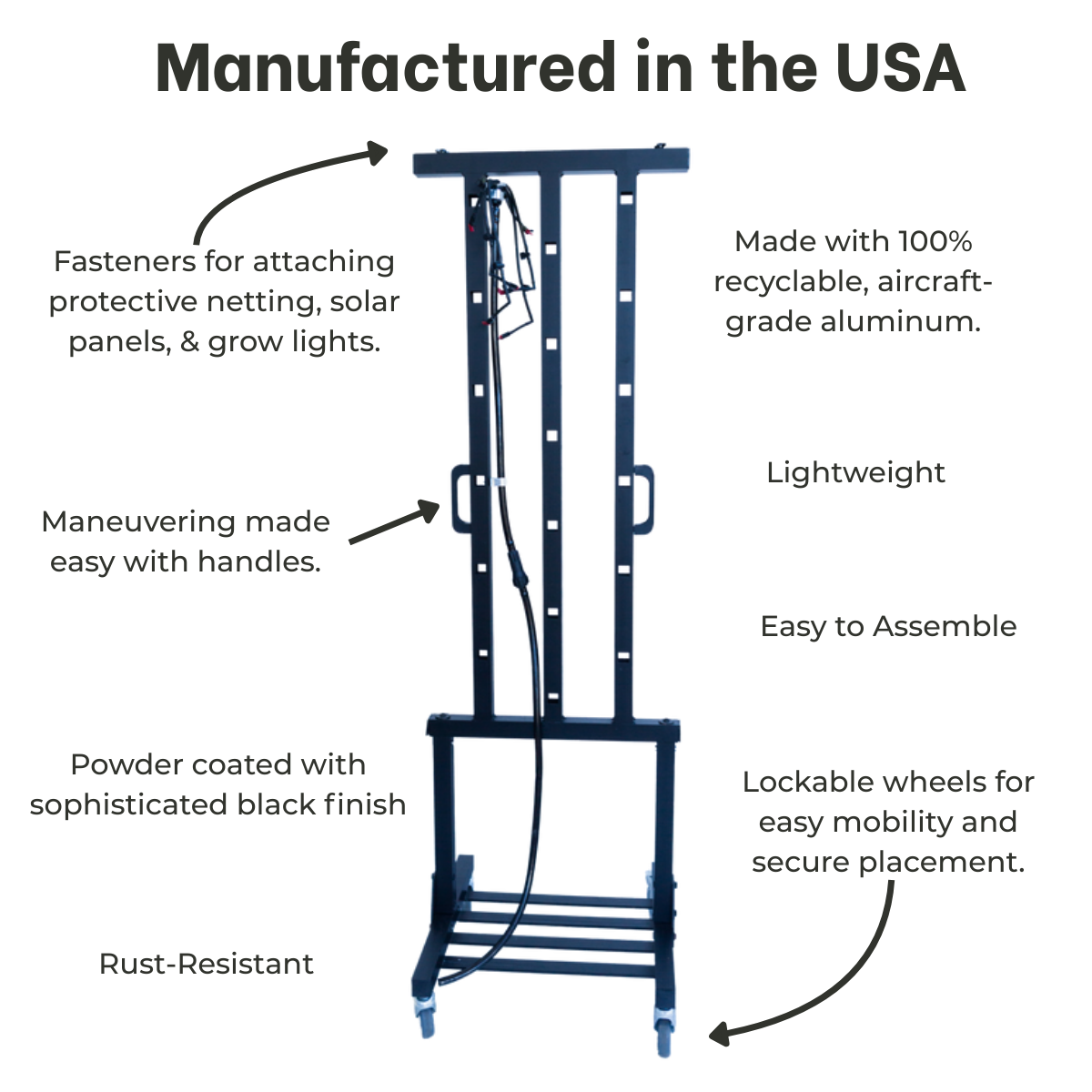 - Lightweight, ultra-durable, and corrosion-resistant aluminum frame.