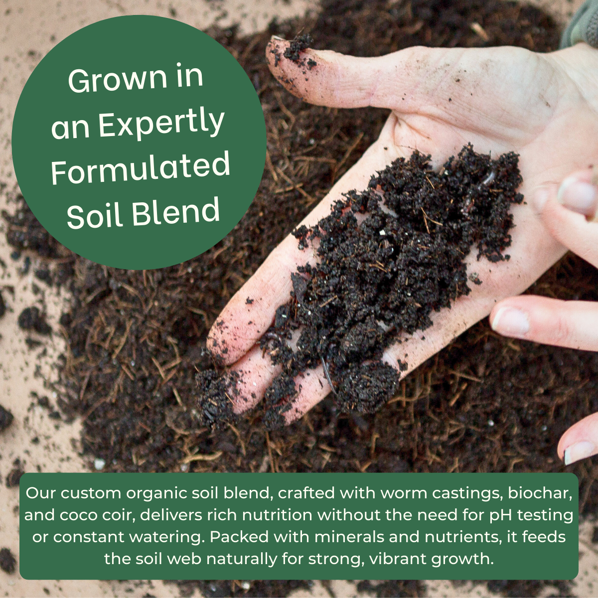- Living soil blend eliminates pH testing and synthetic chemical use.