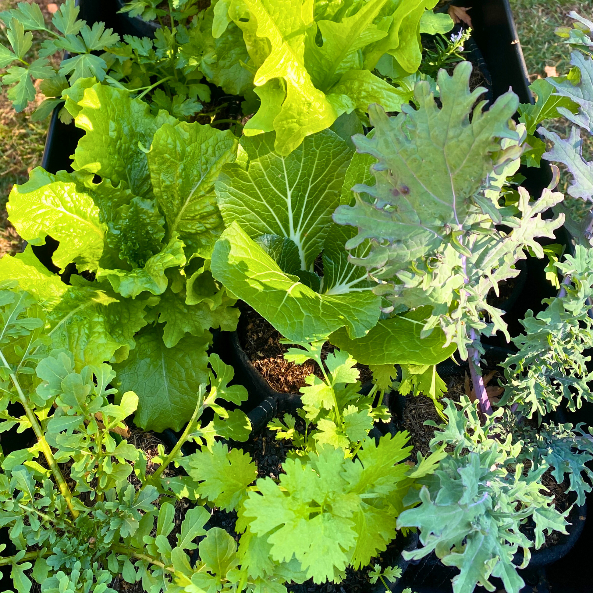 🌱 Super-Greens Garden Kit - valued at $55, includes 6 certified organic seedlings (leafy greens & herbs), 6 premium 1/2 gallon felt pots, organic soil, and soil amendments. This is a great container garden for anyone interested in getting started.